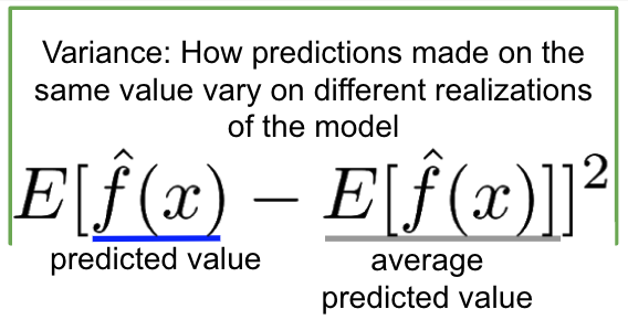 =Variance 분산으로 , (예측 값 – 기댓값)의 제곱으로 표현한다.